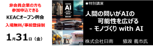 | 15:00~16:00 | 【特別講演】 「人間の問いがAIの可能性を広げる—モノづくり with AI」 猿渡 義市 / Giichi Endo 執筆 著書:「With AIーAIと創るクリエイティブ超制作術」2024/9/14